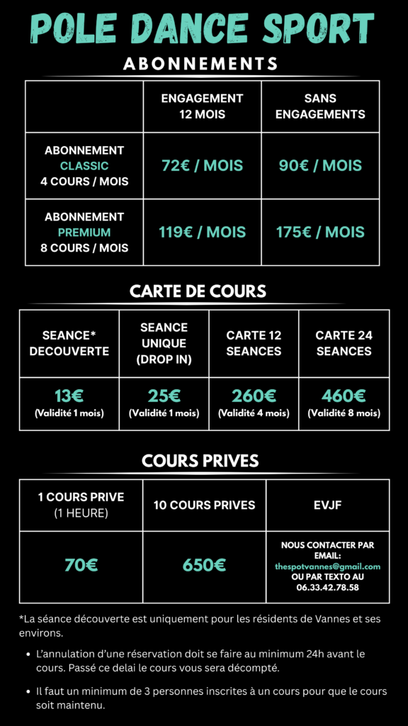 - NOS CARTES ET ABONNEMENTS MULTIDISCIPLINES VOUS DONNENT ACCES A TOUS LES COURS, SAUF CEUX DE POLE DANCE